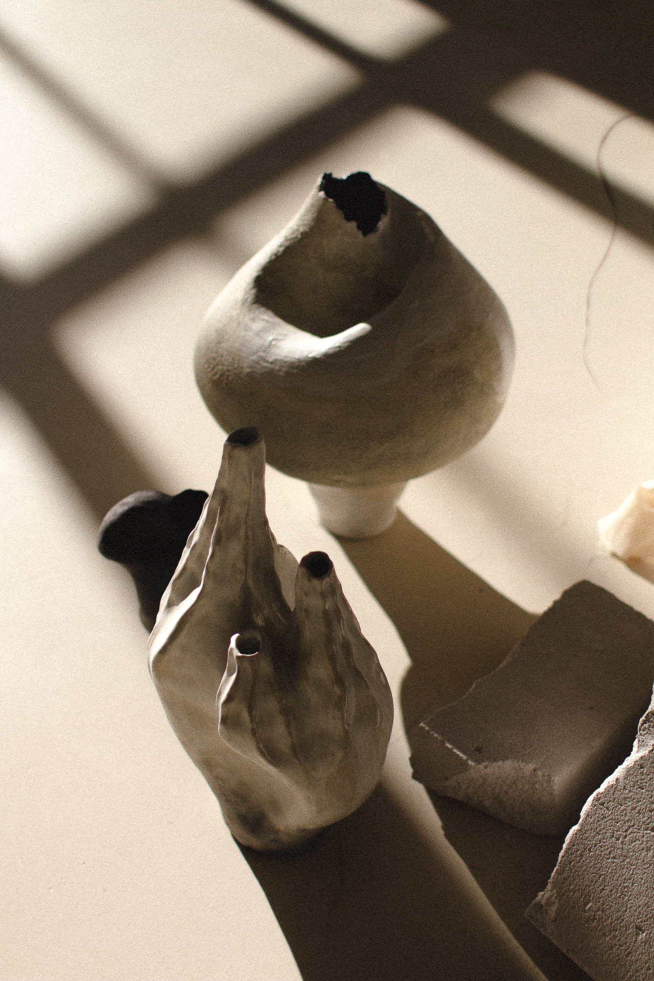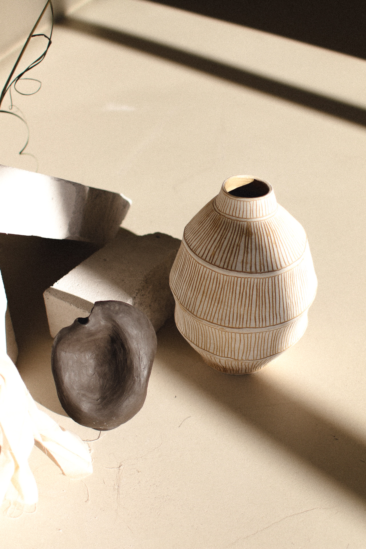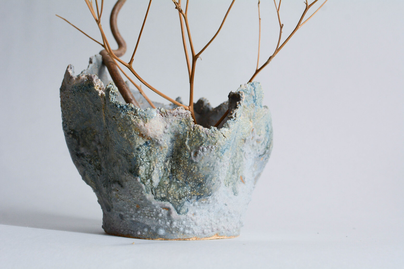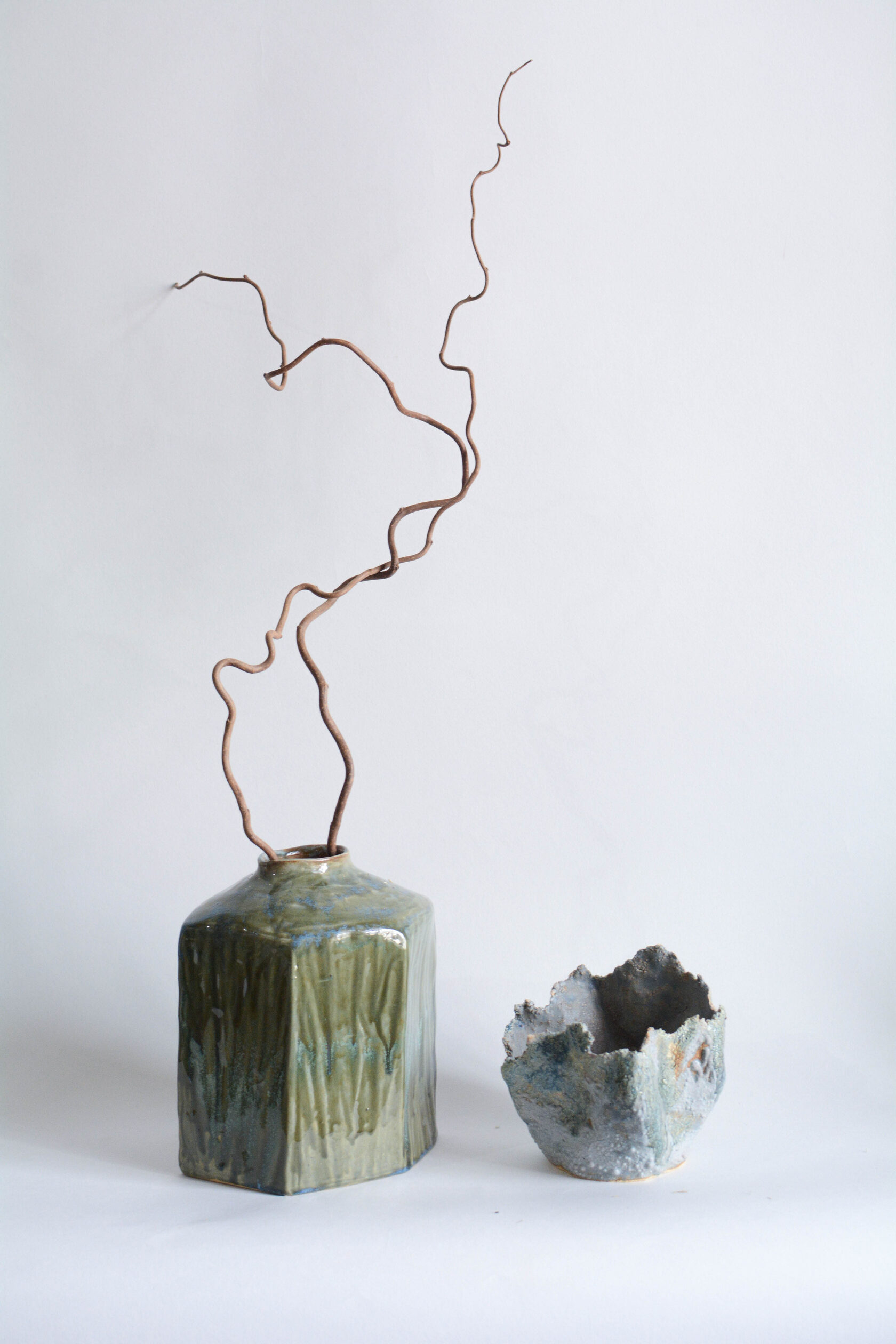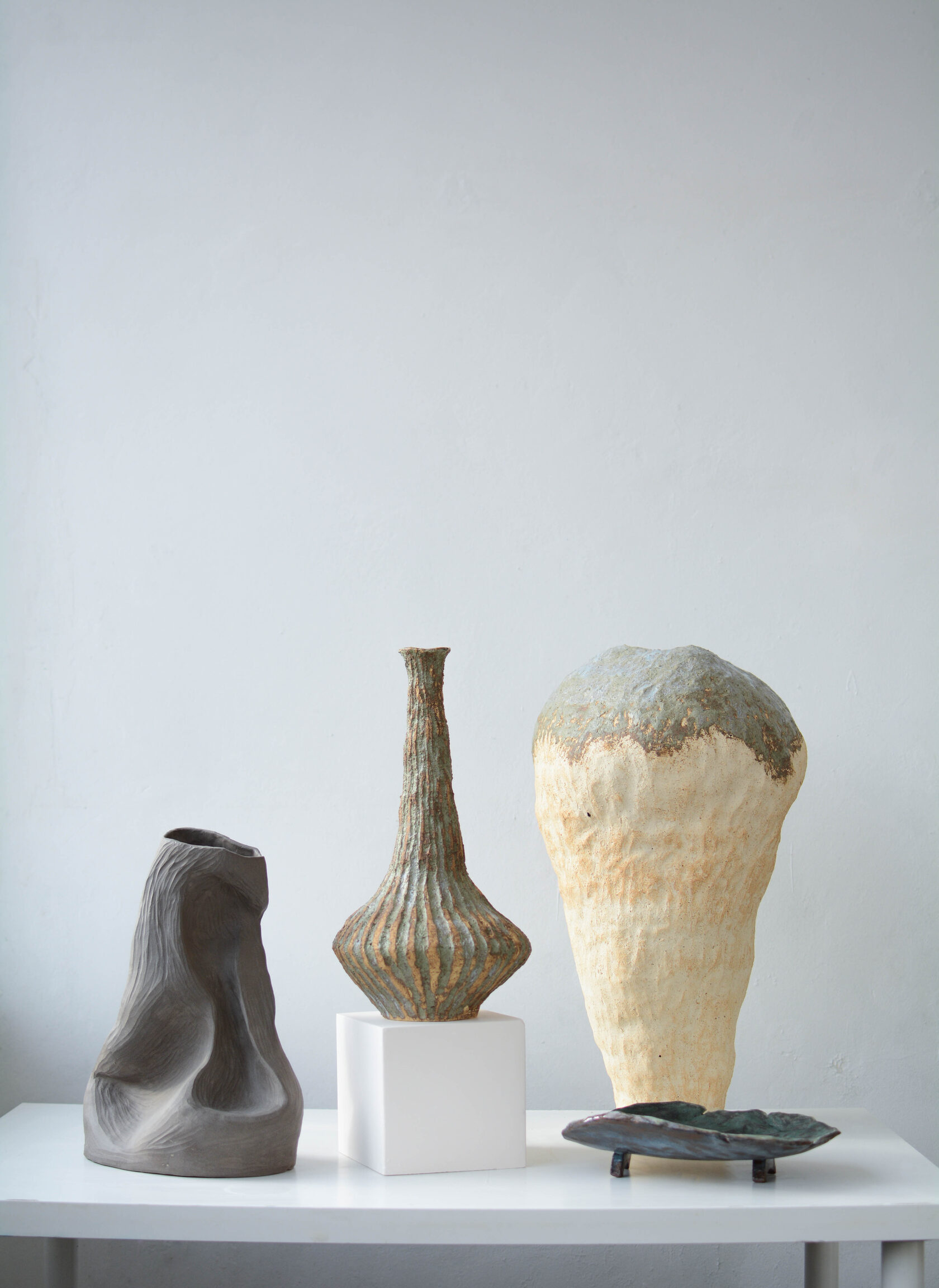 Бежевая глина с шамотом, глазури, высокотемпературный обжиг